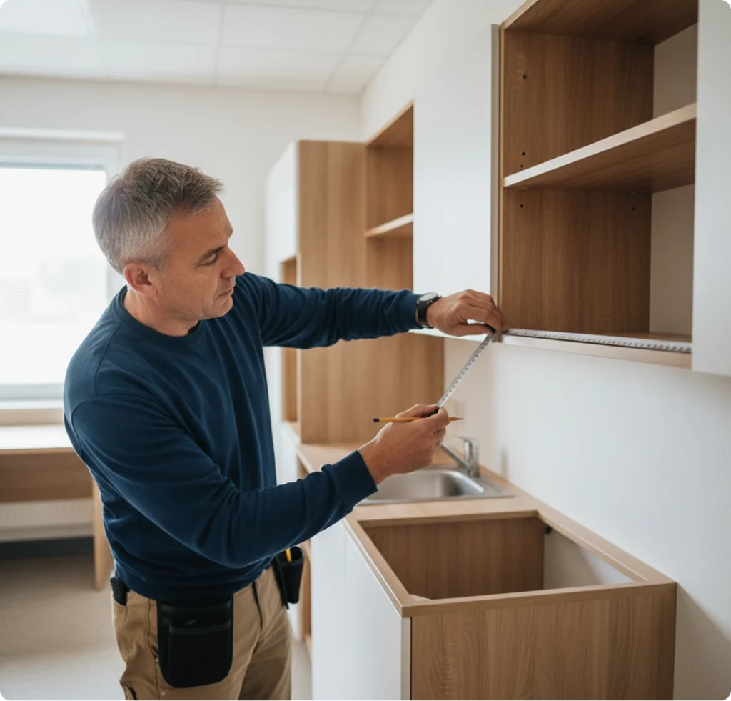 Kitchen projects follow a step-by-step workflow: confirm measurements, coordinate delivery, set cabinets, and finish with trim and hardware. Installers keep the jobsite tidy, remove debris, and provide updates along the way so you know exactly how the project is progressing.